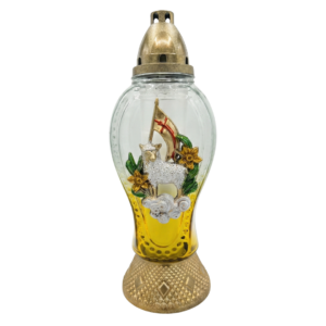 Znicz Szklany Wielkanocny Smukły 34cm – Baranek Złoty, Ombre