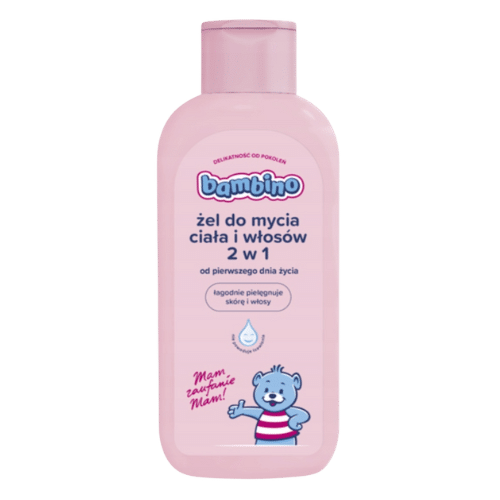 Bambino Żel do Mycia Ciała i Włosów 2 w 1 400 ml to łagodny preparat przeznaczony do codziennej pielęgnacji skóry i włosów niemowląt oraz dzieci – nawet od pierwszego dnia życia. Formuła bez mydła, barwników i parabenów skutecznie myje, jednocześnie chroniąc przed wysuszeniem. Żel nie szczypie w oczy, łatwo się spłukuje i pozostawia skórę oraz włosy miękkie i przyjemne w dotyku.