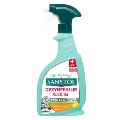 Sanytol Profesjonalny Spray Do Kuchni 750 ml to zaawansowany środek czyszcząco-dezynfekujący, który skutecznie usuwa tłuszcz, zabrudzenia oraz eliminuje 99,9% bakterii, wirusów i grzybów. Dzięki formule bez chloru jest bezpieczny dla większości powierzchni kuchennych, takich jak blaty, zlewy, kuchenki czy lodówki. Idealny do codziennego użytku w domach, restauracjach i innych miejscach wymagających wysokiego poziomu higieny. Dla kompleksowej ochrony warto również wypróbować Sanytol Spray do Łazienki 500 ml, który skutecznie czyści i dezynfekuje powierzchnie łazienkowe.