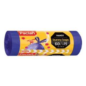 Worki na Śmieci Paclan Bunny Bags 60L 15 sztuk – Fioletowe, Pachnące, Z Uszami do Wiązania