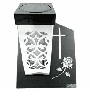 Znicz Szklany Lamel Kameleon Róża Srebrny 39 cm Nowoczesny Lampion z Symboliką Pamięci