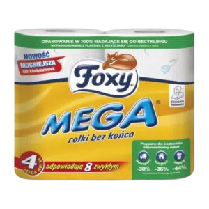 Foxy Mega Papier Toaletowy 3-Warstwowy 4 Rolki Miękkość, Wydajność i Komfort Codziennej Higieny