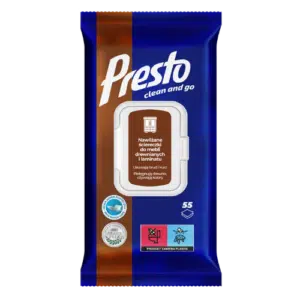 Wybór chusteczek do sprzątania zależy od rodzaju powierzchni, którą chcesz wyczyścić. Presto Ściereczki do Różnych Powierzchni 55 sztuk to uniwersalne rozwiązanie do czyszczenia powierzchni w całym domu, od blatów po meble. Presto Chusteczki do kuchni Dual Action 40 sztuk są specjalnie zaprojektowane do usuwania tłuszczu i zabrudzeń z kuchennych powierzchni. Jeśli zależy Ci na naturalnych składnikach, Luba ECODOM Naturalne Ściereczki Nawilżane KUCHNIA 50 szt. oferują skuteczność przy użyciu ekologicznych, bezpiecznych składników. Luba Comfort czyszczące ściereczki do Skóry 32 szt. są doskonałe do delikatnych powierzchni, takich jak skórzane meble.