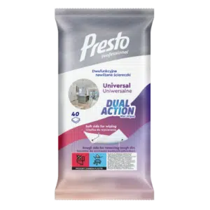 Nawilżane chusteczki do sprzątania to wygodne i skuteczne rozwiązanie, które ułatwia szybkie usuwanie zabrudzeń w kuchni, łazience oraz innych pomieszczeniach. Dzięki nasączeniu specjalnymi płynami czyszczącymi, chusteczki te pozwalają szybko i efektywnie pozbyć się plam, kurzu oraz tłuszczu, bez potrzeby używania dodatkowych środków chemicznych czy wody. Oferujemy szeroką gamę chusteczek, takich jak Presto oraz Luba, które są odpowiednie do różnych powierzchni i zastosowań.