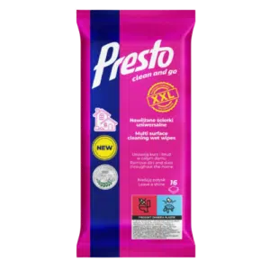 Presto Ściereczki Nawilżane Do Podłóg 16 Szt. Skuteczne Czyszczenie Paneli, Parkietu i Płytek