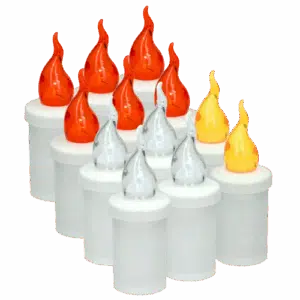 Wkłady LED do zniczy zazwyczaj wymagają baterii typu AA (R6) lub AAA (R3). Na przykład:
