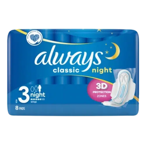 Nowe podpaski Always Classic Night oferują udoskonaloną ochronę dzięki Potrójnym Strefom Ochrony, które zwiększają chłonność i zapewniają komfort podczas “tych dni”. Każda podpaska została zaprojektowana z myślą o maksymalnym bezpieczeństwie w nocy, a indywidualne saszetki ułatwiają przechowywanie i higieniczne użytkowanie.