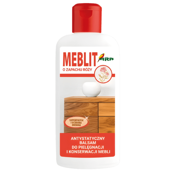 Różany balsam Meblit to pełna uniwersalność, która sprawdzi się w każdym domu. Środek jest skuteczny i całkowicie bezpieczny zarówno na klasycznych meblach z naturalnego drewna, jak i na popularnych płytach laminowanych. Bogata mieszanka składników olejowych działa jak zabieg odnawiający dla wysuszonego, zmęczonego drewna, pozostawiając piękny, elegancki połysk. Dodatkowo skuteczna bariera antystatyczna sprawia, że kurz osadza się znacznie wolniej, a kwiatowy aromat uprzyjemnia codzienne porządki.