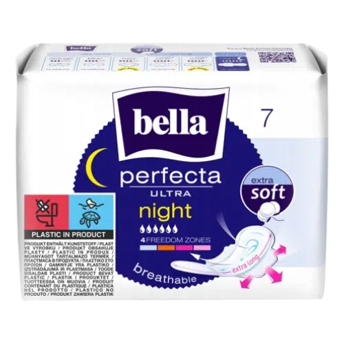 Bella Perfecta Ultra Night Extra Soft to wyjątkowo cienkie, komfortowe podpaski, zaprojektowane specjalnie na noc oraz podczas obfitych miesiączek. Dzięki wydłużonemu kształtowi i powiększonym osłonkom bocznym, zapewniają doskonałą ochronę przed przeciekaniem i maksymalny komfort.
