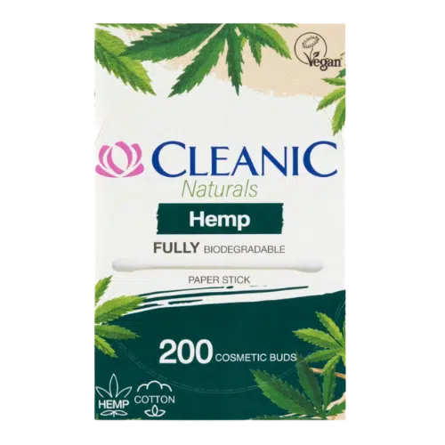 Patyczki higieniczne Cleanic Naturals Hemp łączą codzienną pielęgnację z dbałością o środowisko. Wzbogacone o olej konopny, oferują wyjątkową delikatność i skuteczność, zapewniając komfort podczas codziennych zabiegów higienicznych.