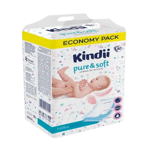 Cleanic Podkłady Dla Niemowląt Kindi Pure&Soft to wyjątkowo miękkie i chłonne podkłady higieniczne stworzone z myślą o delikatnej, wrażliwej skórze niemowląt. Innowacyjna formuła Pure&Soft zapewnia skuteczną ochronę przed wilgocią, pomagając utrzymać higienę i komfort podczas zmiany pieluchy w domu, w podróży oraz podczas wizyt u lekarza.