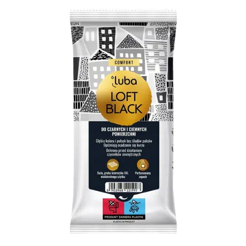 Luba Comfort Czyszczące Ściereczki Loft Black to specjalistyczne nawilżane ściereczki przeznaczone do czyszczenia czarnych oraz ciemnych powierzchni. Skutecznie usuwają zabrudzenia, jednocześnie opóźniając osadzanie się kurzu, co pozwala dłużej cieszyć się czystością. Dzięki zaawansowanej formule ściereczki wydobywają naturalną głębię koloru i nadają powierzchniom estetyczny, elegancki połysk.
