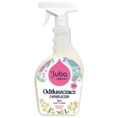 Comfort Perfumowany Odtłuszczacz z wybielaczem to innowacyjny preparat czyszczący, który łączy moc odtłuszczania z efektem wybielania. Dzięki ultra skutecznej formule szybko usuwa stary tłuszcz, kamień, osady z mydła oraz trudne plamy z jasnych tkanin i butów.