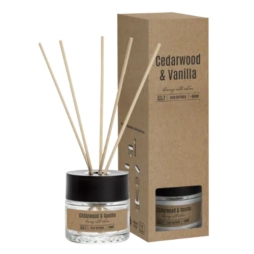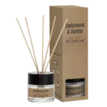 Bispol Dyfuzor Zapachowy Cedarwood & Vanilla to harmonijne połączenie naturalnego aromatu drzewa cedrowego z delikatną słodyczą wanilii. Ta ciepła, otulająca kompozycja wprowadza do wnętrza relaksującą i przytulną atmosferę. Dyfuzor umieszczony jest w eleganckim szklanym pojemniku, który doskonale komponuje się z nowoczesnymi aranżacjami, a naturalne rattanowe patyczki zapewniają równomierne uwalnianie zapachu nawet przez 7 tygodni.