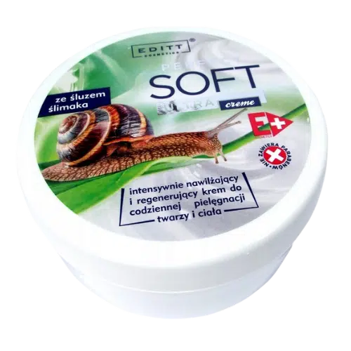 Editt Ultra Soft Krem ze śluzem ślimaka to intensywnie nawilżający i regenerujący kosmetyk przeznaczony do codziennej pielęgnacji twarzy i ciała. Zaawansowana formuła wspiera naturalne procesy odnowy skóry, poprawia jej elastyczność oraz jędrność, zapewniając zdrowy, zadbany i promienny wygląd. Krem doskonale sprawdzi się w pielęgnacji skóry wymagającej regeneracji, nawilżenia i wygładzenia.