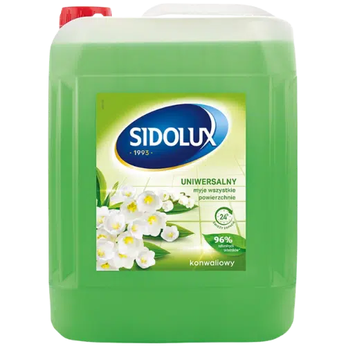 Sidolux Płyn Uniwersalny o zapachu konwalii to niezawodny środek do utrzymania domu w nieskazitelnej czystości. Skutecznie usuwa zabrudzenia z podłóg, płytek oraz innych zmywalnych powierzchni, pozostawiając je lśniące i wolne od smug. Wyjątkowy, delikatny aromat konwalii wypełnia pomieszczenia przyjemną świeżością, tworząc atmosferę czystości i komfortu. Duże, ekonomiczne opakowanie 5 litrów sprawia, że produkt jest idealny do codziennego sprzątania w domu, biurze czy lokalu usługowym.