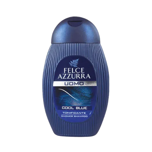 Felce Azzurra Cool Blue to męski żel i szampon 2w1 stworzony dla nowoczesnych mężczyzn, którzy cenią sobie wygodę, skuteczność i styl. Połączenie odświeżającej formuły z wyrafinowanym zapachem zapewnia kompleksową pielęgnację ciała i włosów. Idealny do codziennego użytku – pozwala zachować uczucie czystości i świeżości przez cały dzień.