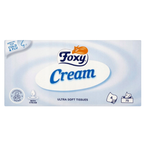 Foxy chusteczki higieniczne z kremem nawilżającym to wyjątkowo delikatne i wytrzymałe chusteczki stworzone z myślą o wrażliwej skórze. Czterowarstwowa struktura zapewnia doskonałą chłonność i miękkość, a dodatek kremu nawilżającego chroni skórę przed podrażnieniami – szczególnie podczas przeziębień czy sezonu alergicznego. Każde opakowanie zawiera 75 sztuk , dzięki czemu możesz mieć je zawsze pod ręką. Dla osób z bardzo wrażliwą skórą polecamy również Foxy Chusteczki Higieniczne 2 warstwowe 200 sztuk, które są bezzapachowe i testowane dermatologicznie.