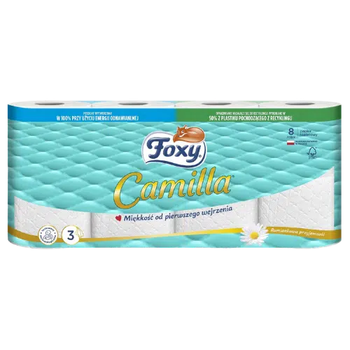 Foxy Camilla to wyjątkowo gruby i miękki papier toaletowy, który zapewnia wysoki komfort codziennego użytkowania. Trzy warstwy papieru gwarantują doskonałą wytrzymałość oraz chłonność, dzięki czemu produkt wyróżnia się jakością wyższą niż standardowe papiery toaletowe. To idealny wybór dla osób ceniących delikatność, bezpieczeństwo i niezawodność.