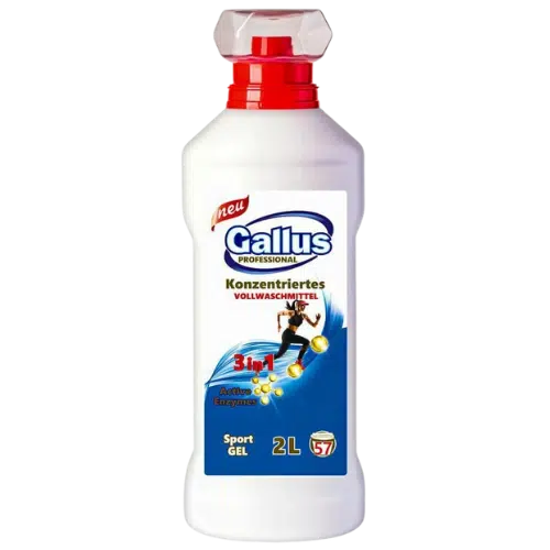 Gallus Professional Sport 3w1 to zaawansowany żel do prania, stworzony specjalnie z myślą o odzieży sportowej i technicznej. Skutecznie usuwa trudne zabrudzenia, pot oraz nieprzyjemne zapachy, jednocześnie dbając o strukturę włókien. Innowacyjna formuła oparta na aktywnych enzymach wspomaga proces prania, a dodatki zmiękczające wodę chronią pralkę przed osadzaniem się kamienia.