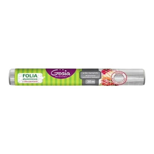 Gosia folia aluminiowa z tłoczeniem to praktyczny i niezawodny produkt, który doskonale sprawdza się w codziennym przygotowywaniu oraz przechowywaniu żywności. Dzięki zastosowaniu tłoczenia folia jest bardziej wytrzymała, elastyczna i odporna na rozdarcia, co ułatwia jej formowanie i dopasowanie do różnych potraw oraz naczyń. Idealna do pieczenia, grillowania, pakowania żywności i ochrony produktów przed wilgocią oraz utratą świeżości.