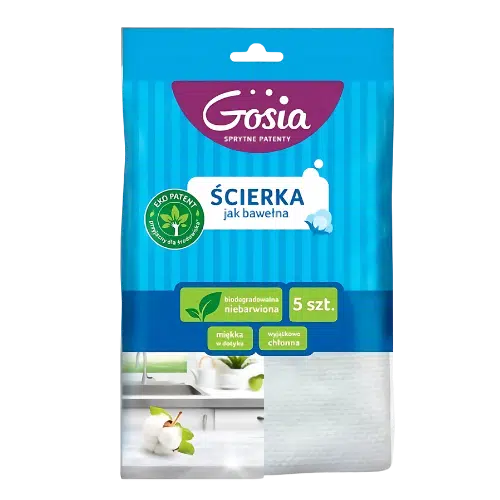 Gosia Ścierka Jak Bawełna to niezastąpiony produkt w codziennych porządkach. Wykonana w 100% z biodegradowalnej wiskozy, jest przyjazna dla środowiska, bardzo chłonna i delikatna dla wszystkich powierzchni. Świetnie sprawdza się zarówno na sucho, jak i na mokro – idealna do wycierania blatów, mebli, armatury i kafelków. Jej naturalna, niebarwiona formuła zapewnia bezpieczeństwo w użytkowaniu i trwałość na długo.