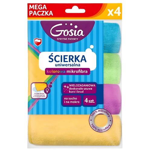 Ściereczki z mikrofibry marki Gosia to niezawodny zestaw do codziennego sprzątania w domu, biurze czy samochodzie. Dzięki superchłonnej strukturze mikrowłókien skutecznie usuwają brud, kurz i tłuszcz z każdej powierzchni – bez smug, zarysowań i potrzeby używania detergentów.