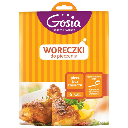 GOSIA Woreczki do pieczenia (6 sztuk) to Twój sposób na idealnie kruche mięso i czysty piekarnik. Dzięki dużym wymiarom 35 x 40 cm (rozmiar XXL), bez trudu przygotujesz w nich całego kurczaka, solidną pieczeń lub zestaw ulubionych warzyw. Specjalna folia jest niezwykle wytrzymała – nie kruszy się i nie pęka pod wpływem temperatury, skutecznie zatrzymując cały aromat i soki wewnątrz potrawy.