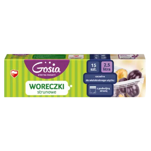 Praktyczne i wytrzymałe woreczki strunowe Gosia o pojemności 2,5 l to niezastąpione rozwiązanie do przechowywania większych porcji produktów.