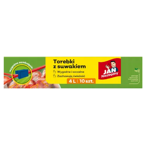 Torebki z suwakiem Jan Niezbędny o pojemności 4 litrów to praktyczne rozwiązanie do przechowywania żywności i innych drobnych przedmiotów. Idealne do używania w domu, pracy czy podczas podróży. Dzięki szczelnemu zamknięciu z suwakiem, produkty dłużej zachowują świeżość.