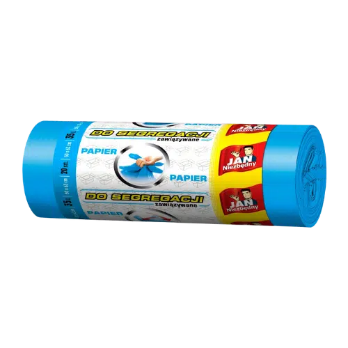Worki Jan Niezbędny dedykowane do segregacji papieru, wykonane z grubej i mocnej folii, odpornej na przetarcia i rozciąganie. Dzięki systemowi Easy Pack można je szybko i szczelnie zawiązać, co zapewnia wygodne użytkowanie i skuteczną ochronę przed wyciekiem wody i tłuszczu.