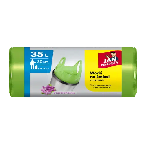 Worki na śmieci Jan Niezbędny 35L to praktyczne i higieniczne rozwiązanie do codziennego użytku w domu, biurze lub innych pomieszczeniach. Wyposażone w wygodne uszy do zawiązywania, ułatwiają przenoszenie i skutecznie zapobiegają rozsypywaniu się odpadów. Dodatkowo, przyjemny zapach neutralizuje nieprzyjemne wonie, zapewniając świeżość i komfort użytkowania każdego dnia.
