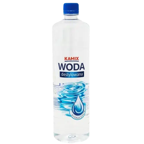 KAMIX Woda Destylowana 1L to wysokiej czystości woda pozbawiona minerałów i zanieczyszczeń, idealna do zastosowań technicznych i domowych. Dzięki procesowi destylacji woda nie zawiera soli, jonów metali ani innych substancji, które mogłyby powodować osadzanie się kamienia lub uszkodzenia urządzeń. Doskonale sprawdza się w żelazkach parowych, nawilżaczach powietrza, akumulatorach, chłodnicach samochodowych oraz w pracach laboratoryjnych i kosmetycznych. Regularne stosowanie wody destylowanej KAMIX przedłuża żywotność urządzeń i zapobiega ich awariom.