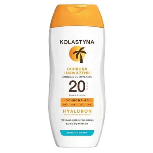Szukasz lekkiego kosmetyku, który zapewni Twojej skórze bezpieczeństwo i optymalną pielęgnację podczas letniego wypoczynku? Kolastyna Emulsja do Opalania SPF 20 (200 ml) to idealny wybór dla osób o normalnej karnacji lub skórze już lekko przyzwyczajonej do słońca. Dzięki średniemu poziomowi ochrony SPF 20, emulsja skutecznie blokuje promieniowanie UVA i UVB, przeciwdziałając fotostarzeniu oraz bolesnym poparzeniom. Lekka, nietłusta formuła sprawia, że aplikacja jest czystą przyjemnością, a Ty możesz zapomnieć o białych śladach na ciele.