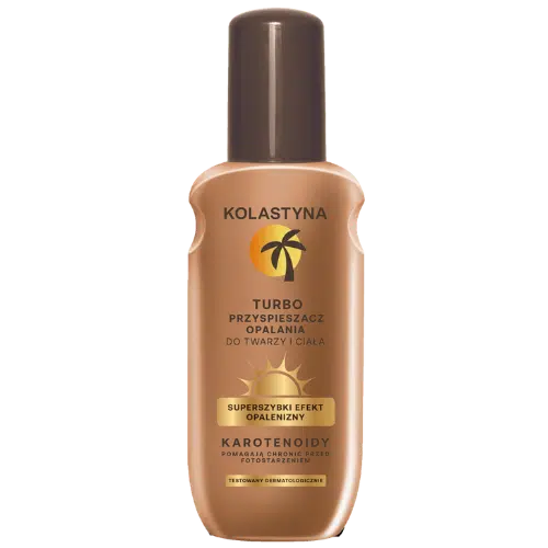 Marzysz o intensywnym, czekoladowym odcieniu skóry bez konieczności wielogodzinnego leżenia na słońcu? Kolastyna Turbo Przyspieszacz Opalania (150 ml) to produkt stworzony dla osób, które pragną szybkich i widocznych efektów. Dzięki skoncentrowanej formule, preparat aktywnie stymuluje produkcję melaniny, skracając czas potrzebny do uzyskania głębokiego brązu. Lekka konsystencja błyskawicznie się wchłania, pozostawiając skórę jedwabiście gładką i przygotowaną na słońce lub wizytę w solarium.