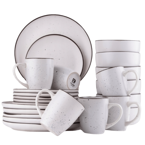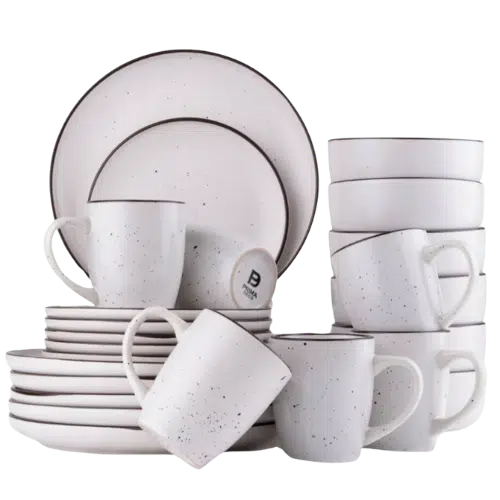 Serwis obiadowy Kamionka Jasnoszary 24-elementowy marki Prima Deco to eleganckie połączenie stylu rustykalnego i współczesnego minimalizmu. Zastawa została wykonana z trwałej ceramiki szkliwionej o matowym wykończeniu, które podkreśla naturalny, rękodzielniczy charakter naczyń. Subtelny, jasnoszary kolor z delikatnym nakrapianym wzorem i przecieranym, brązowym rantem nadaje im wyjątkowego uroku. Komplet idealnie sprawdzi się zarówno podczas codziennych posiłków, jak i przy eleganckich kolacjach. Dzięki możliwości mycia w zmywarce i użytkowania w kuchence mikrofalowej, jest równie praktyczny, co piękny.