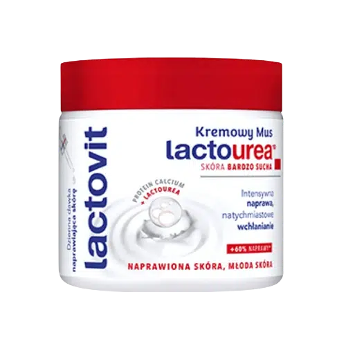 Lactovit Lactourea mus do ciała to zaawansowany kosmetyk pielęgnacyjny, który zapewnia skórze intensywne nawilżenie, wygładzenie oraz poprawę elastyczności. Formuła oparta na urei i kwasie mlekowym wspiera odbudowę naturalnej bariery ochronnej skóry, pomagając przywrócić jej miękkość, sprężystość i zdrowy wygląd. Lekka, musowa konsystencja szybko się wchłania, nie pozostawiając tłustego filmu, dzięki czemu pielęgnacja jest komfortowa i przyjemna.