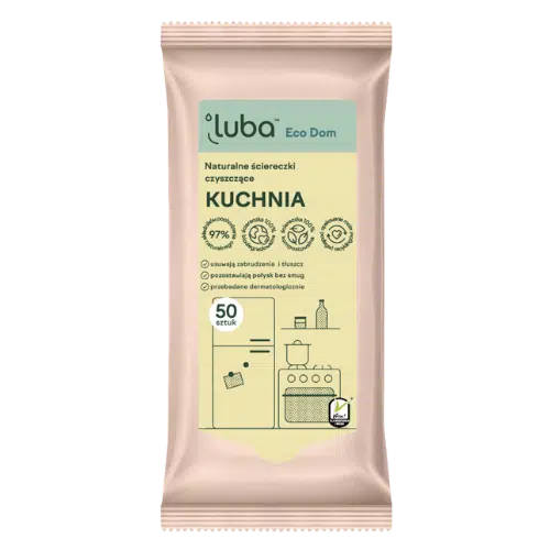 Luba ECODOM to naturalne, biodegradowalne ściereczki nawilżane, idealne do utrzymania czystości w kuchni. Usuwają tłuszcz i zabrudzenia, pozostawiając powierzchnie bez smug i nieprzyjemnych zapachów. Dzięki naturalnym składnikom, ściereczki są bezpieczne dla skóry oraz środowiska.