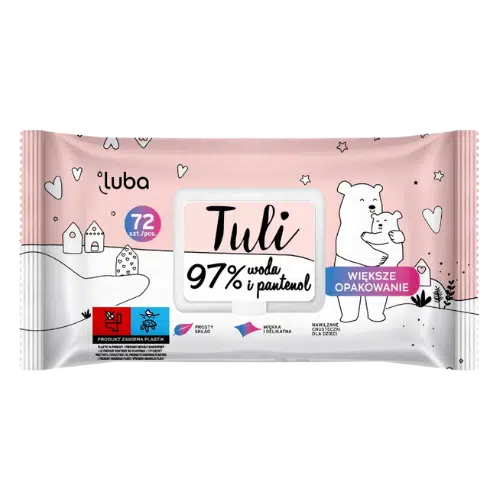 Najlepsze będą chusteczki o prostym składzie, z wysoką zawartością wody i dodatkiem substancji kojących, takich jak pantenol – dokładnie takie jak Luba Tuli, które są bezpieczne już od pierwszego dnia życia.
