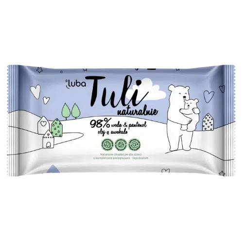 Delikatne chusteczki nawilżane Luba Tuli z naturalnym kompleksem pielęgnacyjno-łagodzącym, składającym się w 98% z wody, pantenolu i oleju z awokado, są idealne do codziennej pielęgnacji skóry niemowląt już od pierwszego miesiąca życia. Dzięki recepturze opartej na filtrowanej wodzie i przyjaznym dla skóry składnikom, chusteczki doskonale dbają o skórę dziecka, jednocześnie zachowując jej naturalną barierę ochronną.
