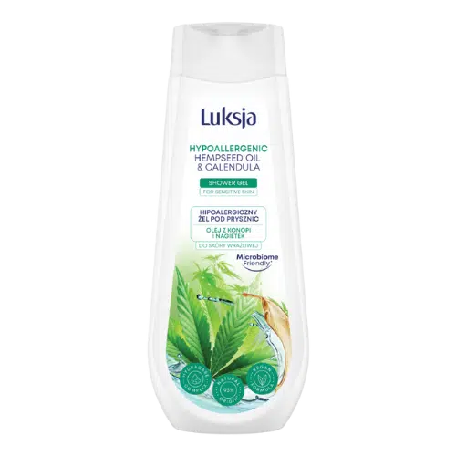 Luksja Hipoalergiczny Płyn do Kąpieli Olej z Konopi i Nagietek 500 ml to delikatny płyn stworzony z myślą o osobach z wrażliwą i skłonną do podrażnień skórą. Zawiera olej z konopi, który działa regenerująco i przeciwzapalnie, oraz ekstrakt z nagietka znany z właściwości łagodzących i ochronnych. Hipoalergiczna formuła nie zawiera barwników, parabenów ani alergenów zapachowych. Produkt zawiera 93% składników pochodzenia naturalnego, jest wegański i biodegradowalny – idealny do relaksującej, bezpiecznej kąpieli każdego dnia.