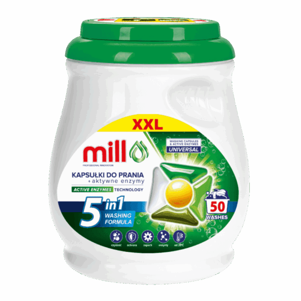 Kapsułki do prania uniwersalnego Mill Universal Booster 5w1 – 50 szt. – skuteczność i wygoda w jednym praniu