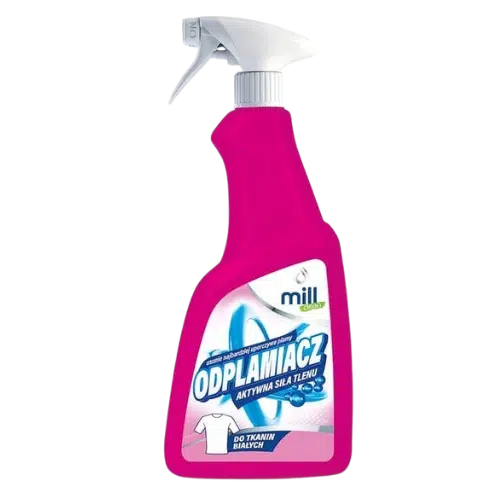 Do kompleksowej pielęgnacji jasnych ubrań warto sięgnąć również po Mill odtłuszczacz do tłustych plam 555 ml, który doskonale uzupełnia działanie odplamiacza.