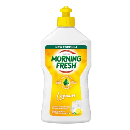 Morning Fresh płyn do mycia naczyń cytryna to wydajny środek przeznaczony do codziennego mycia naczyń, sztućców oraz akcesoriów kuchennych. Skoncentrowana formuła skutecznie usuwa tłuszcz i uporczywe zabrudzenia, pozostawiając naczynia czyste i lśniące. Orzeźwiający zapach cytryny nadaje kuchni przyjemną świeżość, a jednocześnie jest łagodny dla skóry dłoni.