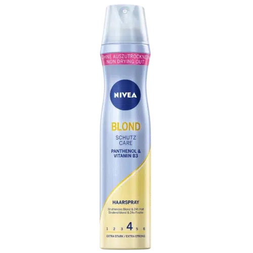 Poznaj Nivea Lakier do Włosów Blonde Care, stworzony specjalnie dla osób z blond włosami. Ten lakier zapewnia mocne utrwalenie fryzury, jednocześnie podkreślając naturalny blask blond włosów i chroniąc je przed przesuszeniem.