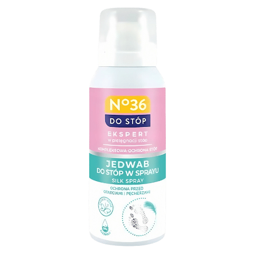 No 36 Silk Spray to innowacyjny dezodorant w sprayu do stóp, wyposażony w jedwabne mikrokapsułki, które tworzą na skórze niewidzialną, ochronną warstwę. Zapobiega bolesnym otarciom i pęcherzom, jednocześnie redukuje potliwość i nieprzyjemny zapach – pozostawiając stopy suche i świeże przez cały dzień.