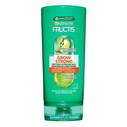 Garnier Fructis Grow Strong to odżywka przeznaczona do wzmacniania włosów i regeneracji od nasady aż po same końce. Dzięki formule wzbogaconej o ceramidy i aktywny koncentrat z owoców, odżywka sprawia, że włosy stają się silniejsze, bardziej odporne i pełne blasku.