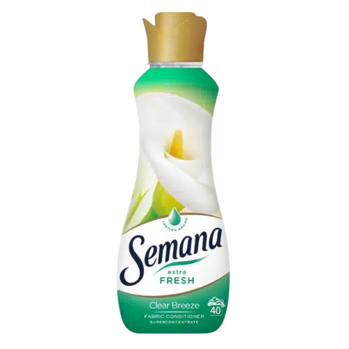 Semana Extrafresh płyn do płukania Clear Breeze to skuteczny środek do pielęgnacji tkanin, który nadaje ubraniom przyjemny, długotrwały zapach oraz wyjątkową miękkość. Formuła została opracowana tak, aby chronić włókna przed sztywnieniem i sprawiać, że odzież jest bardziej komfortowa w noszeniu. Świeży zapach Clear Breeze pozostawia uczucie czystości i lekkości po każdym praniu.
