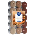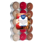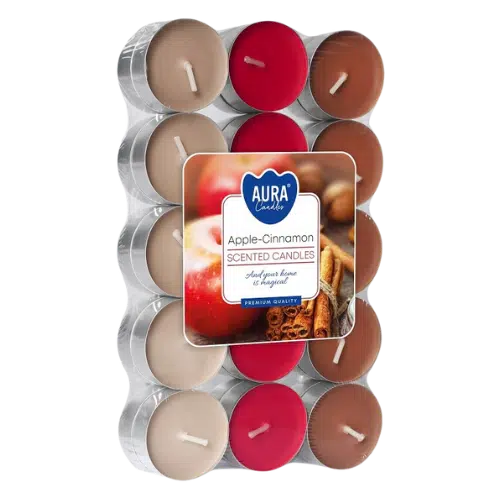 Bispol Aura podgrzewacze zapachowe Jabłko-Cynamon to klasyczna, korzenno-owocowa kompozycja, która wypełnia wnętrze ciepłem i domową atmosferą. Połączenie soczystego jabłka z aromatycznym cynamonem przywołuje skojarzenia z zimowymi wieczorami i okresem świątecznym, tworząc przyjemny i relaksujący nastrój. Różnobarwny wosk i delikatny płomień sprawiają, że tealighty pełnią również funkcję dekoracyjną.