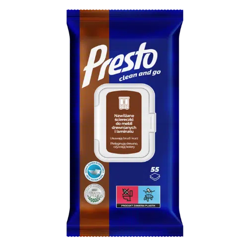 Presto Ściereczki Nawilżane do Mebli Drewnianych 55 Szt. – Skuteczne Czyszczenie i Pielęgnacja Twoich Mebli